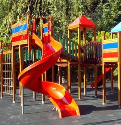 - Slides, swings, climbing systems