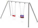 Silver PlaygroundsOne of the all-time favourites of the playgrounds areas: The Big Double Metal swing.This product has a solid metal construction beam,first class metal posts,stainlees steel connection hardware and European safety norms tested swing seats.